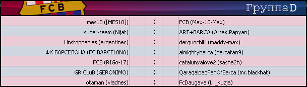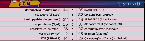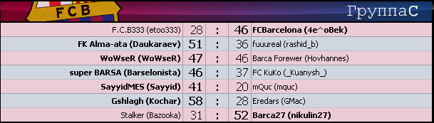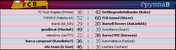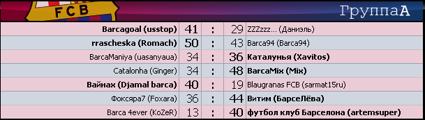 - +27 - группа A - Barca 4ever (KoZeR) - футбол клуб Барселона (artemsuper) 13 : 40