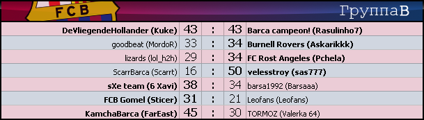 - 86 - группа B - DeVliegendeHollander (Kuke) - Barca campeon! (Rasulinho7) 43 : 43