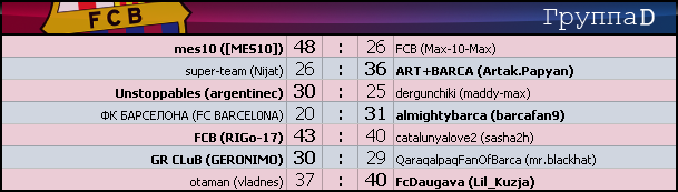 - 83 - группа D - FCB (RIGo-17) - catalunyalove2 (sasha2h) 43 : 40