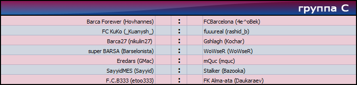 - +40 - группа C - FK Alma-ata (Daukaraev) - Barca Forewer (Hovhannes) 8 : 48