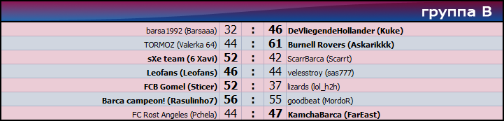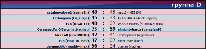 - +27 - группа A - Blaugranas FCB (sarmat15ru) - ZZZzzz… (Даниэль) 31 : 58
