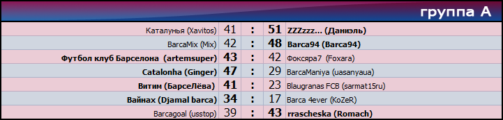 - 92 - группа A - Каталунья (Xavitos) - ZZZzzz… (Даниэль) 41 : 51