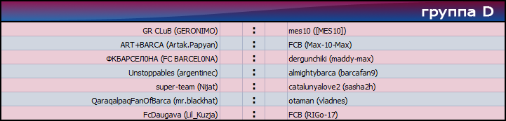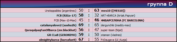 - +26 - группа D - FCB (RIGo-17) - ART+BARCA (Artak.Papyan) 58 : 32