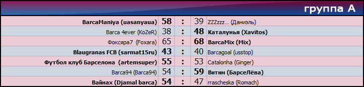 - +19 - группа A - BarcaManiya (uasanyaua) - ZZZzzz… (Даниэль) 58 : 39