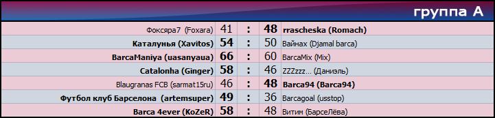 - 126 - группа A - BarcaManiya (uasanyaua) - BarcaMix (Mix) 66 : 60