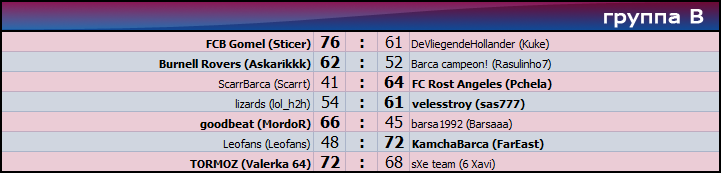 - +19 - группа B - barsa1992 (Barsaaa) - FCB Gomel (Sticer)64 : 45