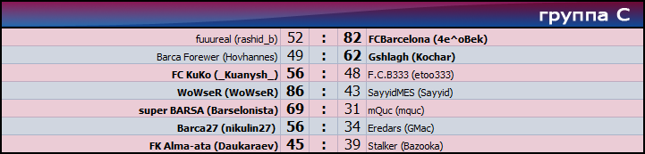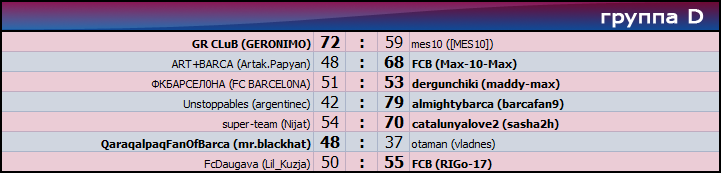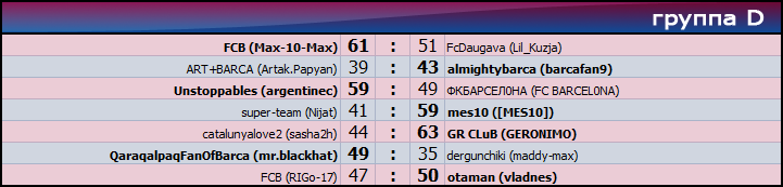 - +37 - группа D - Unstoppables (argentinec) - almightybarca (barcafan9) 42 : 79