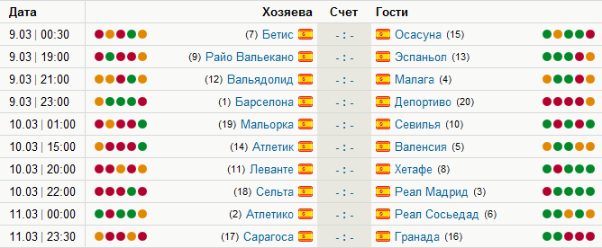 И напоследок, матчи Ла Лиги в которых и будут зарабатывать очки ваши команды:
