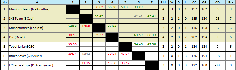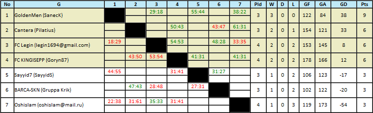 Как видим, распределение в группах к данному туру совершенно формальное и отстающие готовы в любой момент отобрать очки у вырвавшихся вперёд. Что ж, тем интереснее! Надеюсь, так и продолжим))