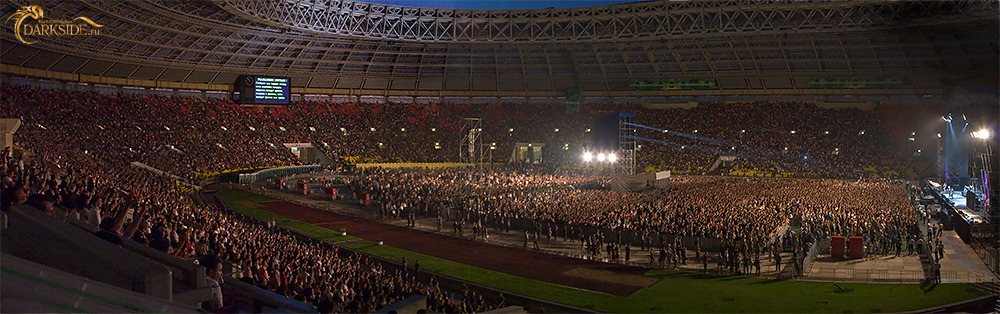 пока туда сюда в 15.00 был на Спортивной. Вышел из метро и сразу увидел толпы металюг стоящих кто где, прошолсы неспеша до Лужи прошёл на тереторию, прошвырнулся немного, купил майку(фото прилагается), и пошёл смотреть где что, народа было не много, поначалу ментов и солдат было шрен знает сколько, посмотрел как начинает рости очередь в фан-зону,послушал как настраивают аппаратуру за стенами а тем временем прошол ещё час, запускать должны были в 16.30, уже 16.20а народу немного, я уже подумал чёт за херня , тут меня рассмешил один крендиль мимо проходящий, у него были сапоги такие старенькие потрёпаные и один перемотан скотчем, как в фильме Харлей Дэведсан и Ковбой Мальборо , ну вы понели о чём я. Ну время значит уже 16.30 а народу попрежнему с*** да ни***, потом смотрю толпа бежит от главного входа ну думаю кто-то опоздал, смотрю а за ней ещё и ещё народ прёт просто тучей, встретил другана и он мне пояснил что всех собравшихся не пускали на тереторию до поры до времяни, я то рано приехал и прошёл без проблем а потом видимо прикрыли вход.