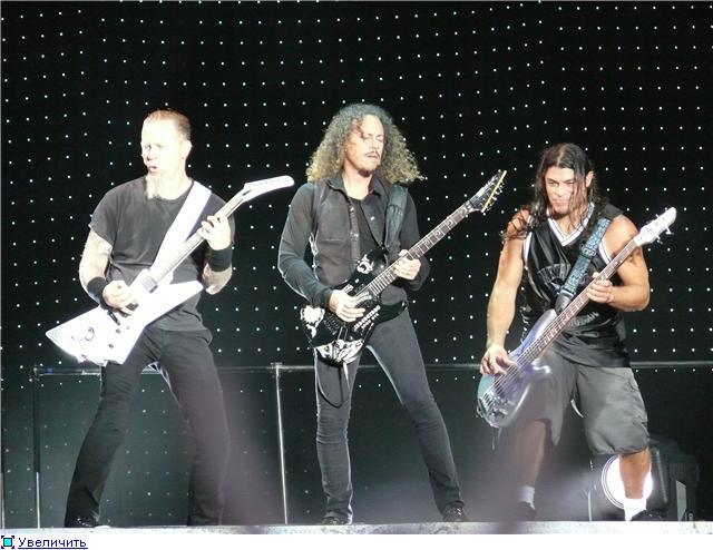 (Ларс) , И вот наконец зазвучали первые ноты Мариконнэ, на экранах показывают отрывок из фильма, стадион полон, поднимается такой крик что ничего не слышно, и вот выходят они! Этого момента все ждали 16 лет , Ларс встаёт над ударными делает глоток из стаканчика и бросает его в топу, и резко начинается Creeing Death, весь стадион в неистовом порыве продолжает орать . Песня кончается Джеймс приветствует народ и при каждом слове Москва все просто ревут от счастья, Затем следует FUEL, потом Джеймс говарит как довно они не были у нас и начинаются песни,