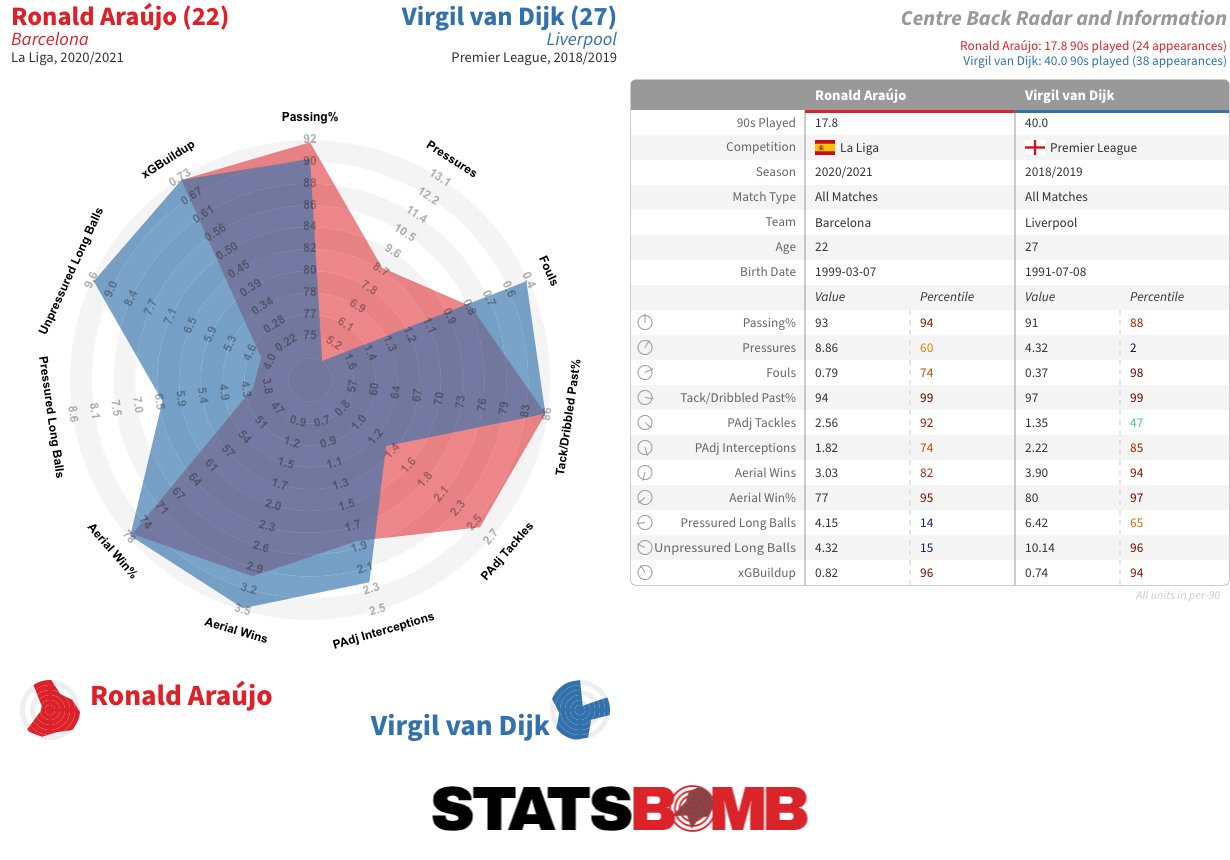Интересное сравнение показателей Араухо прошлого сезона с показателями Ван Дейка в сезоне 18/19: