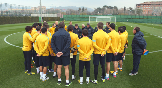 По традиции на следующий день после матча вышедшие в основном составе на "Сан Сиро" игроки провели восстановительную тренировку на "Сьютат Эспортива". Главным новшеством этой сессии стал Давид Вилья. Астурийский нападающий пришел к соглашению с тренерами команды и не поехал в Милан, оставшись тренироваться в одиночестве в Барселоне, после того как на прошлой неделе перенес почечную колику. Эта болезнь отняла у него много сил. В четверг Вилья возобновил работу в общей группе. Футболисты, сыгравшие на "Сан Сиро", тренировались в более щадящем режиме. Представитель команды "Б" Баньюс также занимался с первой командой.