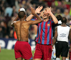 "Удивительно. Мы не показали выдающийся игры, но этого было достаточно чтобы пройти дальше. Важно было отнестись серьезно к игре. Мы не дали им свободного пространства для игры. У меня не было достаточно времени все обдумать. Я был готов продолжать. Райкаард дал мне те же инструкции, что и на матч с "Депортиво" - меняться местами с Сэми. Сегодня "Камп-Ноу" был особенным. Сейчас я не думаю о возможных соперниках. Я устал и хочу насладиться моментом. Я собираюсь смотреть телевизор до 5 утра, а затем включить музыку".