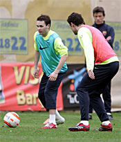 Это`о также пропустил тренировку, поскольку занимался в спортзале, как и Рафа Маркес, который получил специальный отпуск, и травмированные Месси, Габри и Хави. Игроки, которые вышли в стартовом составе против "Осасуны", а также Ларссон, который сыграл несколько минут, сделали только несколько легких упражнений для разминки и рано ушли в раздевалку. Но Виктор Вальдес остался и присоединился для упражнений к своим товарищам, которые большинство матча в воскресенье провели вне поля.