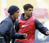 Роналдинью, Хенрик Ларссон, СантиягоЭскерро и Рафа Маркес работали вместе. Мексиканец начинал атаки, которые развивали нападающие, пытавшиеся пройти через оборонительные редуты, состоявшие из Райкаарда, Эусебио и Альберта Рока. На воротах был Альберт Жоркера. Остальная команда играла мини-двусторонку на оставшейся части поля.