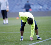 Игроки ""Барсы"" опробовали и проверили новый газон "Камп-Ноу" на последней тренировке перед домашним матчем с "Бетисом". Франк Райкаард поздравил с возвращением Карлеса Пуйоля, удачно прошедшего все тесты утром в пятницу в клинике "Асепейо". Внизу фотографии с тренировки.