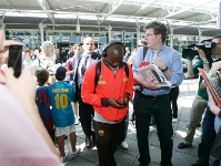 Было 11-00, когда чартерный рейс OR917 вылетел из Aeropuerto del Prat на самолете с 228 пассажирами, среди которых было более 100 болельщиков “Барсы”. Двумя часами позже Боинг-767 приземлился в Мюнхене, где была температура 18°С. Команда проведет ночь в Mandarin Oriental Hotel а затем проследует на “Альянц Арену”.