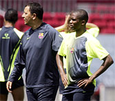 Осталось мало времени, и предоставляются последние шансы повторить изученное и научиться новому. Сегодня на "Ла-Масии"состоялась напряженная и серьезная тренировка под руководством Хенка Тена Кате, в то время как Райкаард работал в офисе.