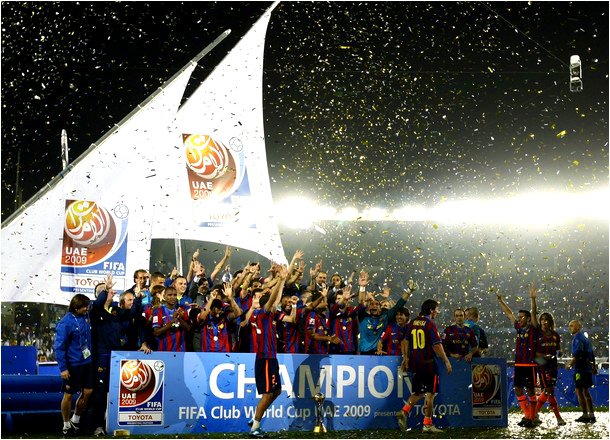 19 декабря. 2009 год теперь можно смело назвать лучшим в 110-летней истории "Барселоны". В финале Клубного чемпионата мира ФИФА обыгран аргентинский "Эстудиантес", тем самым команда завоевала единственный трофей, которого не было в музее "Барсы". Такого достижения не добивалась еще ни одна команда в истории мирового футбола - в течение года выиграны все шесть официальных титулов. Уникальный рекорд также поставил Педро, который в течение года отличился голами во всех шести разных турнирах. Видео (слезы Гвардиолы, церемония награждения). Фотогалерея.