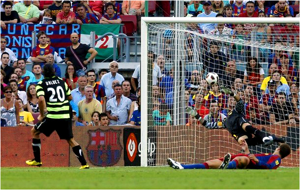 В домашнем матче второго тура Примеры "Барселона" сенсационно уступила "Эркулесу". Героем матча стал парагвайский нападающий Нельсон Вальдез, дважды поразивший ворота Виктора Вальдеса.