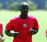 Перед началом тренировки Тюрам долго беседовал с Это`о и Чави, так как неплохо знает их. Когда после легкой разминки и некоторых упражнений Райкаард допустил Тюрама к тренировкам с общей группой, остальные игроки встретили француза аплодисментами.