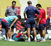 Поражение всегда заставляет команду проанализировать свои ошибки, тем более, если проигран финал. Субботний тренировочный сбор не был исключением из этого правила. Только Роналдинью, который занимался отдельно в тренажерном зале, пропускал тренировку.