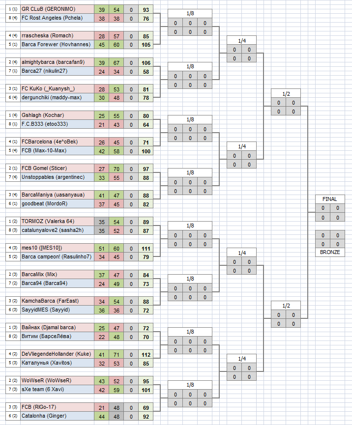 Перед решающими, третьими матчами первой стадии плей-офф нашего фэнтези-турнира, испанская Примера, как впрочем и весь европейский клубный футбол, взяла двухнедельную паузу на игры сборных, позволяя нам подвести некоторые промежуточные итоги и взглянуть на промежуточные результаты пар 1/16 финала после двух из трёх сыгранных матчей. Напоминаю наверняка всем известную деталь, что дальше проходят не по большему числу побед в матчах текущей стадии, а по большему количеству набранных очков за все матчи этой самой стадии. То бишь, ничего не потеряно и не выиграно до третьего матча, как бы плохо или хорошо не было сейчас :) Хотя забегая вперёд, можно сказать, что в некоторых парах к этому очень и очень близко...