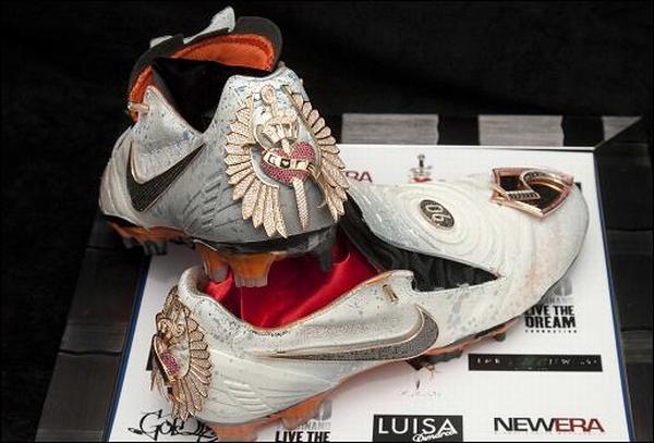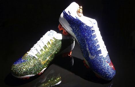 Игровые бутсы Nike Total 90 Laser II знаменитого англичанина Уэйна Руни оценены в $250 тыс. Парочка «ботинок» украшена 2576 драгоценными камнями, включающими белые бриллианты общим весом 10 карат и черные бриллианты весом 31 карат. Известный номер футбольной звезды покрыт розовым золотом.