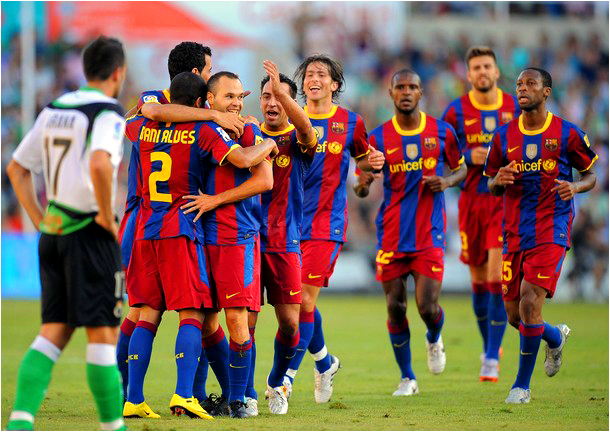 "Барса" отлично начала выступление в Примере в сезоне 2010-11. На поле "Расинга" каталонцы не оставили хозяевам ни единого шанса. Уже на третьей минуте матча отличился Лео Месси, затем настала очередь Иньесты. Вальдес внес свою лепту, отбив несправедливо назначенный пенальти, а Вилья завершил начатое дело, открыв счет официально забитым за "Барсу" голам.