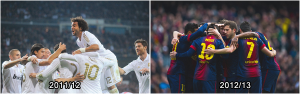 Противоположные показатели по сравнению с прошлогодним чемпионатом имеют и каталонцы. "Барса" забила за 23 тура на десять голов больше, что вылилось и в улучшении показателя набранных очков, коих стало на 11 больше, чем в прошлом году. При сохранении 12-очкового отрыва от ближайшего преследователя, "Барса" может досрочно оформить чемпионство перед такими большими играми, как с "Атлетико" на "Висенте Кальдерон" и с "Эспаньолом" на "Корнелья Эль-Прат".