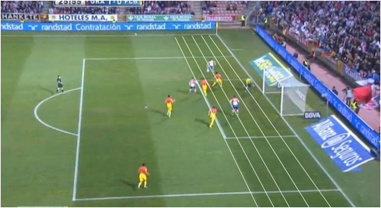"Барса" приехала на "Лос-Карменес" после концерта недельной давности в игре с "Хетафе" на "Камп Ноу" (6:1). Но ее эффективность у ворот соперника на этот раз не шла ни в какое сравнение со спектаклем против мадридской команды. Сине-гранатовые упустили полдюжины явных возможностей в первые 45 минут. И в этом больше всех "преуспел" Алексис Санчес. Чилийцу, всегда способному оторваться от соперника, не хватало уверенности и спокойствия в завершающей стадии атак. Вдохновленный Тоньо подпортил нападающему настроение, выйдя победителем в двух дуэлях "один на один" на 4-й и 25-й минутах соответственно. В обоих эпизодах Алексису не удалось как следует подготовить удар.