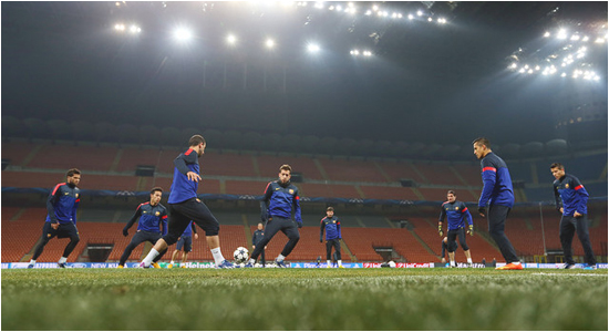Еще не прошло даже года с момента, когда "Барселона" в последний раз наносила визит на "Сан Сиро". Если точно, то с последней встречи на поле красно-черных прошло 328 дней. И сине-гранатовые вновь вернулись на этот стадион, чтобы сыграть в первой встрече 1/8 финала Лиги чемпионов. Во вторник вечером команда провела последнюю подготовительную тренировку перед возвращением в Лигу чемпионов. На этот матч Жорди Роура имеет в распоряжении 20 футболистов, среди которых и Чави Эрнандес, получивший медицинское разрешение перед поездкой в Милан. В то время как в Барселоне остались Вилья, Адриано, дос Сантос и Абидаль.