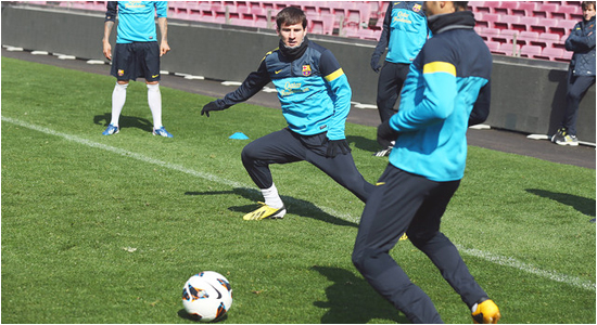 Чави и Месси в ходе одной из тренировок на "Камп Ноу"