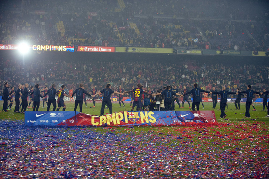 Чествование нового чемпиона Испании на его домашнем стадионе прошло при полупустых трибунах. Таким образом, была зафиксирована самая низкая отметка посещаемости "Камп Ноу" в рамках Ла Лиги за последние 29 матчей. 30 ноября 2011 года на матч против "Райо Вальекано" (4:0) собралось 53,775 зрителей, что еще на 2,280 меньше, чем в последнем матче с "Вальядолидом". Та игра с "Райо" была перенесена на середину недели из-за скорого участия "Барселоны" на клубном чемпионате мира, во многом из-за чего и собрала такое относительно небольшое количество зрителей.