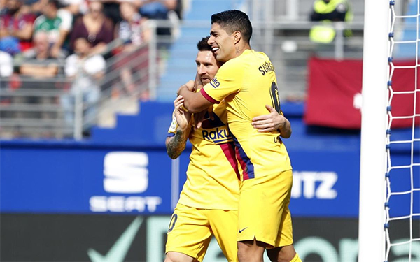 "Барселона" уже единолично лидирует в Примере. Случилось это в удачно сложившийся игровой день субботы, после уверенной победы 0:3 в матче против "Эйбара" и поражения мадридского "Реала" в Мальорке, где сливочные уступили 1:0.