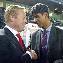 Тренер "Барселоны" Франк Райкаард остался удовлетворен нулевой ничьей в первом четвертьфинальном матче Лиги чемпионов УЕФА против "Бенфики". Его визави Рональд Куман после встречи отметил великолепную игру голкиперов и признал, что победить мог любой из соперников.
