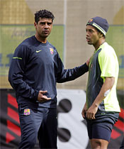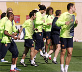 Сессия закончилась физическими упражнениями. Мотта и Роналдинью бегали взад -перед по кромке поля, в то время как Тен Кейт практиковал с Это`о и Ларссоном удары. На другом конце поля остальные игроки собрались в штрафной площади, отрабатывая удары головой и замыкание прострелов.