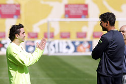 Одним из самых долгожданных лиц на сегодняшней тренировочной сессии был Хави Эрнандес. Полузащитник находится на финальной стадии выздоровления после травмы и работает под наблюдательным взором физиотерапевта Жуаньо Брау. Перед возвращением в раздевалку Хави провел длительную беседу с тренером Франком Райкаардом.