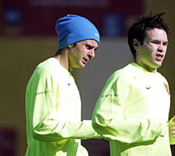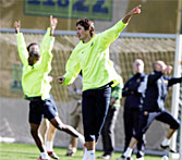 Как уже стало нормой на последних тренировках, вторая половина заключалась в тактических упражнениях. Райкаард управлял нападающими, которых поделил на две группы. В первой были Самюель Это’о , Роналдинью и Лео Месси, а во второй - Хенрик Ларссон, СантиягоЭскерро и Макси Лопес.