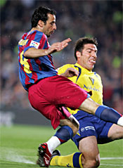 Болельщики на трибунах демонстрировали свое замечательное расположение духа, особенно рьяно приветствуя Хави, разминавшегося у кромки поля перед тем, как выйти на замену. Возможно, поддержка фанатов была бы еще более очевидной, забей бы "Барса" пенальти - на 63-й минуте, но удар Это'о с 11-метровой отметки вратарь "Кадиса" Лимиа сумел отразить в красивом прыжке, точно разгадав траекторию мяча. Франк Райкаард принял решение укреплять атаку, выпустив на поле Ларссона вместо подуставшего Жюли, и Иньесту - вместо Тьягу Мотты.