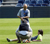 Несмотря на то, что Райкаард дал команде день отдыха, аргентинский юниор появился на поле "Камп-Ноу" в полдень, где фанаты горячо встречали его. Месси был в сопровождении тренера Жуаньо Брау во время легкой пробежки и работы с мячом. Клубный доктор Жиль Родас тоже вышел на поле для того, чтобы поработать с Месси и Брау до того, как аргентинец ушел в раздевалку под аккомпанименты фанов, которые аплодировали ему.