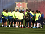 Одержав очень важную победу над миланским “Интером” во вторник, футболисты “Барсы” получили в среду заслуженный выходной, а сегодня с утра вновь приступили к тренировкам. Сессия началась в 11-00 на “Сьюдад Депортива”. Целью ее стала подготовка к воскресному матчу с “Реалом”.