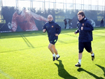 В начале тренировки все игроки были собраны в центре поля для небольшой беседы. После этого стартовали обычные разогревочные упражнения и пробежки. А после них футболисты выполняли различные упражнения, направленные на физподготовку.