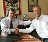 После прошедших утренних тестов, Гудьонсен прибыл в клубный офис, где подписал контракт, который сделал исландца игроком "Барселоны" до 2010 года. Далее была фотосессия на стадионе "Камп-Ноу", где новичок команды позировал перед репортерами в футболке своего нового клуба. Последний раз Гудьонсен был на этой арене в марте этого года, когда его прежний клуб "Челси" встречался с "Барсой" в рамках Лиги чемпионов.
