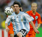 Сборная Голландии часто брала инициативу в свои ноги, но Месси не давал голландцам покоя, в одном из моментов совершив проход и отдав пас своему товарищу по команде Эстебану Камбьяссо. Нападающий сборной Голландии Куйт и атакующий полузащитник сборной Аргентины Риккельме по разу имели выгодные шансы открыть счет в матче, но попытки оказались тщетными. Первый тайм прошел под знаком хорошей обороны сборной Аргентины.
