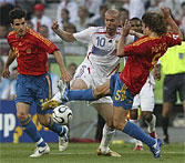 У французов главной ударной силой в атаке оставался дуэт Анри-Рибери, однако героем эпизода со вторым забитым мячом в ворота Испании стал Патрик Виейра, оказавшийся расторопнее всех после подачи со штрафного Зидана, заработанный при непосредственном участии Пуйоля, сфолившем на Зинедине. На последних минутах матча отличился сам Зидан, обыгравший Пуйоля и Касильяса и установивший итоговый счет в этом матче.