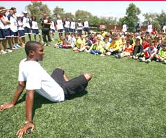 В беседе с ребятами он сказал, что не согласен с критикой, обрушившейся на Роналдинью после вылета сборной Бразилии с чемпионата мира, а также пообещал увеличить достижения "Барсы" в новом сезоне.