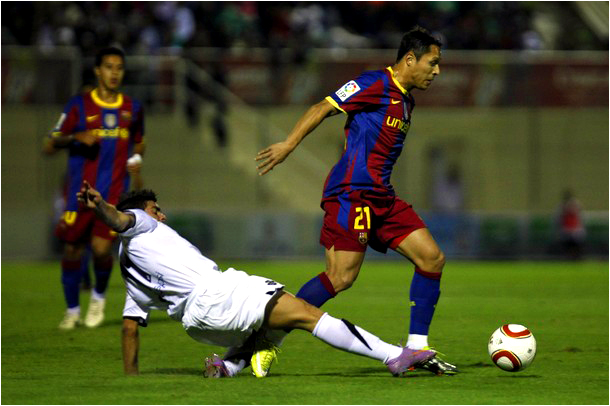 Дело было наполовину сделано. Бартра и Фонтас великолепно работали в паре. Благодаря этому Пинто почти весь матч находился в роли зрителя. В центре поля был полный порядок благодаря усилиям мощных Кейта и Маскерано, а также креативного Тиаго. В атаке каталонцы в основном действовали флангами. На 27-й минуте сине-гранатовые были близки к тому, чтобы довести счет до разгромного, но Боян, который после прострела с правого фланга набегал на пустые уже ворота, сумел попасть только в перекладину. Единственным отрицательным моментом в первом тайме стала травма Жеффрена.