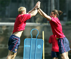 Главный тренер команды пропустил тренировку в "Ла-Масии", прошедшую этим утром. Райкаард предпочел сосредоточиться на офисных делах. Также пропускали тренировку Эдмилсон и новички команды - Дзамбротта и Тюрам.